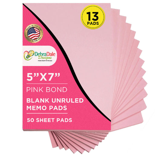 5” x 7” Blank Notepads – 13 Pack – Pink – 50 Sheets Each – 20# Bond – Chipboard Back