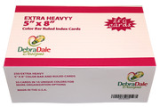 Keep your notes neat, organized, and visually appealing with our 5" x 8" Color Bar Ruled Cards. This set includes 250 cards, each crafted from standard 100# bright white cover cardstock for durability and a smooth writing surface. These high-quality cards feature ruled lines on one side and are blank on the reverse side, offering flexibility for various uses. The cards are white with ten different color bars, providing a practical way to categorize and highlight information.