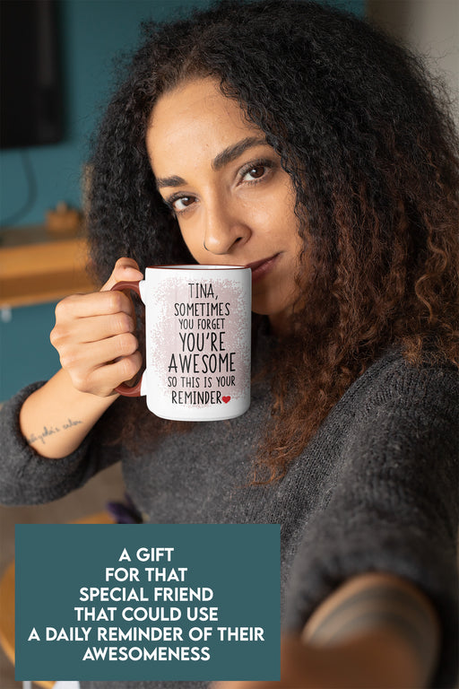 Personalized "Sometimes You Forget You're Awesome" Inspirational Coffee Mug/Teacup - Choice of sizes and colors