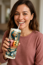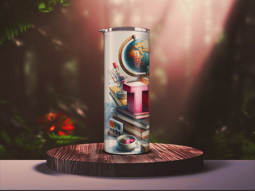 Brighten up a teacher’s day with this vibrant 20oz tumbler—perfect for coffee, tea, or classroom fuel! Featuring a playful, colorful design filled with books, pencils, a globe, and bold "TEACH" lettering, this tumbler is both practical and full of personality.