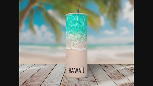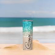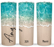 Bring the beach with you wherever you go with our Custom Beach Footprints 20-ounce stainless steel tumbler. This stunning tumbler features a serene ocean and sandy shore design, customizable with your name, location, and year, making it a perfect memento of a favorite vacation or celebration. It’s double-walled and vacuum-insulated to keep your drinks hot or cold for hours. Complete with a spill-resistant lid and reusable plastic straw, it’s the ideal tumbler for on-the-go beach lovers!