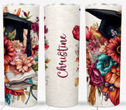 Personalized BOHO Floral Graduation Tumbler – 20 oz Stainless Steel with Custom Name