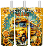 Personalized Transportation Squad Retro School Bus 20 Ounce Tumbler Travel Mug with Lid and Straw