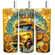 Personalized Transportation Squad Retro School Bus 20 Ounce Tumbler Travel Mug with Lid and Straw